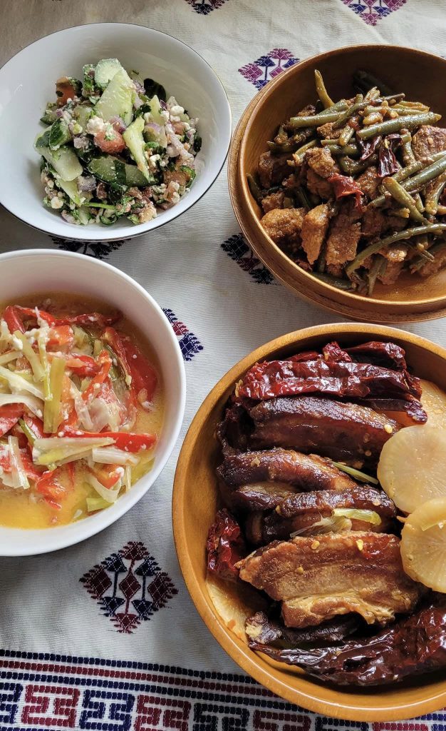 - Lunch and dinners consist of freshly cooked organic vegetables, a meat dish and either Bhutanese red rice or white rice, and a noodle/pasta dishes.
